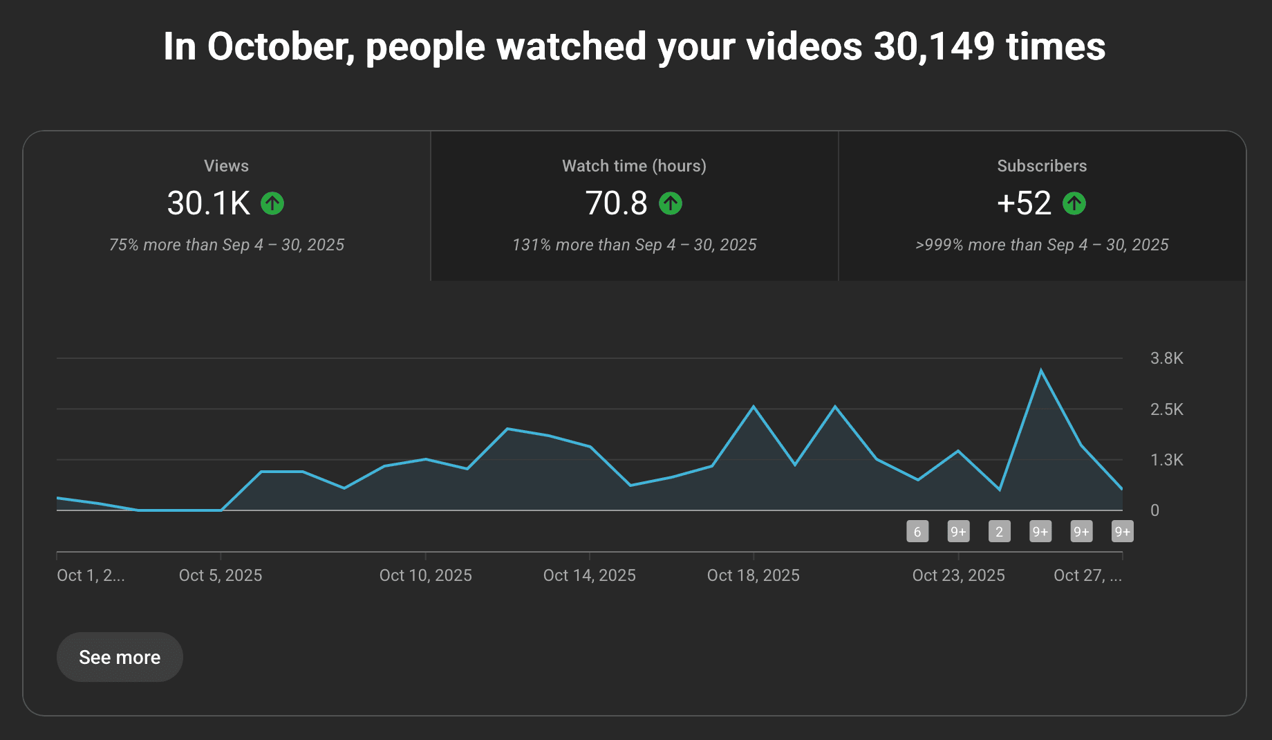 Hey Reader, Lately, I’ve been running a simple experiment on my Hacks & Hobbies YouTube channel. So here’s the idea: So I started posting. And the results? Honestly — wild. Between September and October 2025, here’s what happened:
